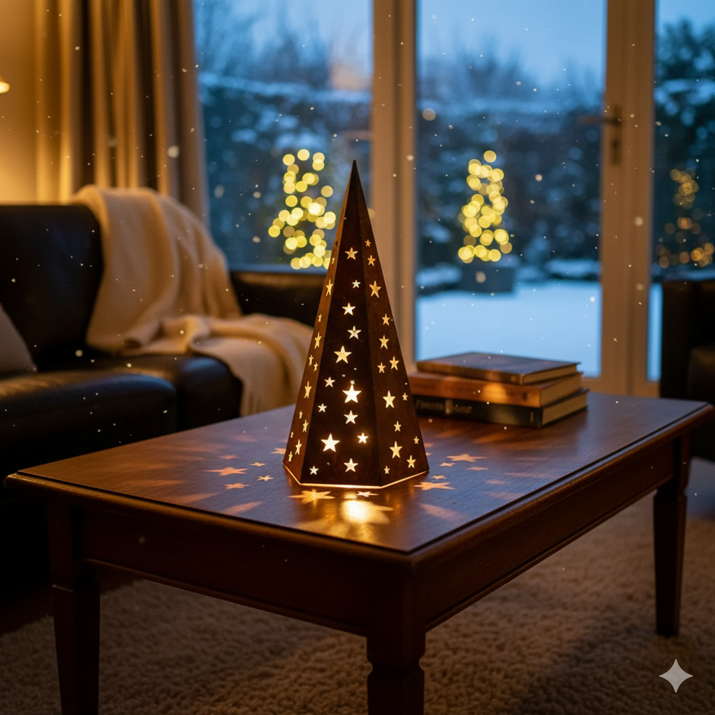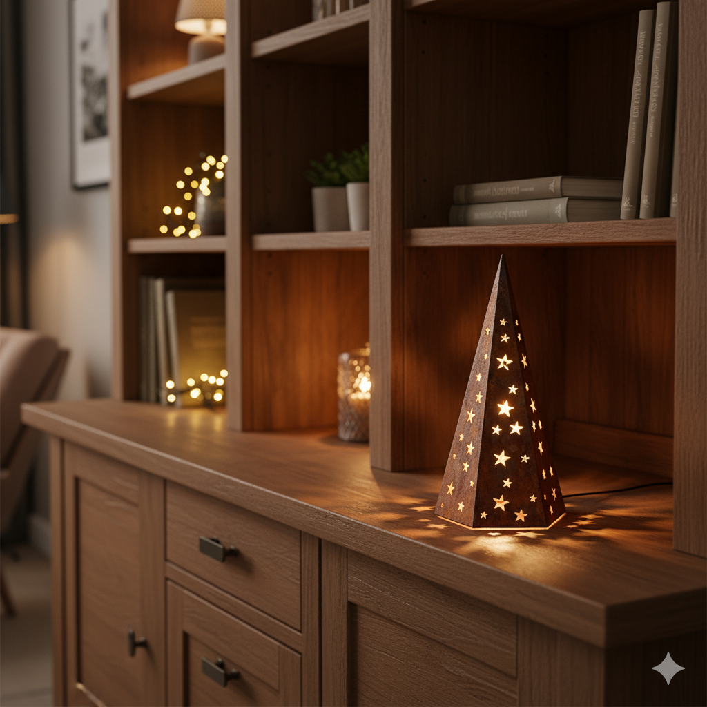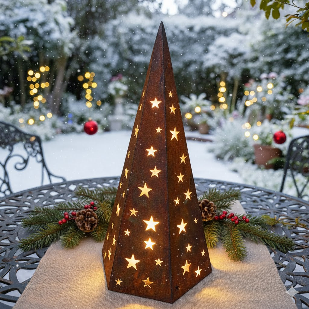 Vergessen Sie die Standard-Weihnachtsdeko. Unsere Rostige Sternen-Pyramide ist mehr als nur eine Laterne – sie ist ein Kunstwerk mit Charakter und eine Lichtquelle, die sofort für festliche Gemütlichkeit sorgt.